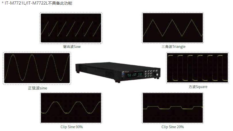 IT-M7700系列內(nèi)置方形、鋸齒形、三角形等多種用戶自定義波形、多達(dá)30種內(nèi)置的畸變波形,供用戶編輯、調(diào)取,可作為基礎(chǔ)波形,亦在list編程時(shí)進(jìn)行調(diào)取。