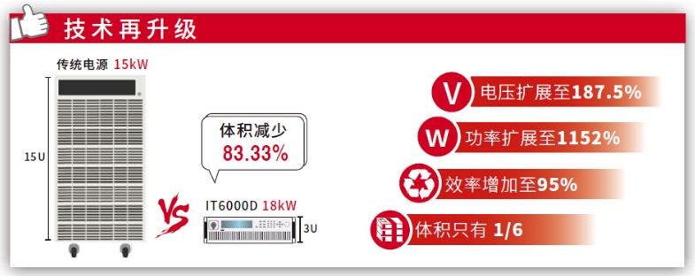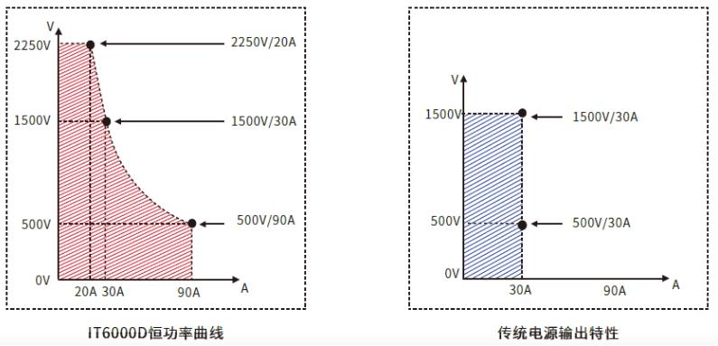 相較于傳統(tǒng)固定范圍輸出直流電源,IT6000D系列在功率區(qū)間內(nèi),各種電壓、電流的組合都能夠以全功率輸出,單臺(tái)電源涵蓋傳統(tǒng)電源3~5臺(tái)的應(yīng)用,三臺(tái)電源則可覆蓋傳統(tǒng)10~13臺(tái),大幅降低電源系統(tǒng)搭建的復(fù)雜度及占用空間。