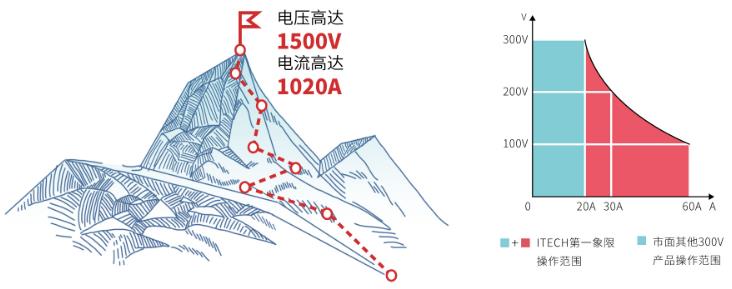 IT-M3900C全系列共有28個(gè)型號,輸出電壓從10V~1500V,單機(jī)輸出電流最大可達(dá)1020A。采用寬范圍的輸出設(shè)計(jì),相較于傳統(tǒng)固定范圍輸出直流電源,為用戶提供了更多的電壓和電流組合,讓使用更加靈活。單臺電源就可以涵蓋用戶廣闊范圍的應(yīng)用需求,大幅降低電源系統(tǒng)搭建的復(fù)雜度及占用空間。