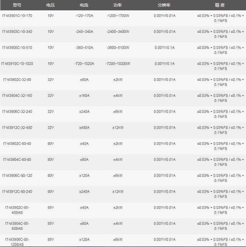 IT-M3900C是一款回饋式的雙向可編程直流電源,集雙向電源和回饋式負(fù)載功能特性于一體,并將消耗的能量清潔的返回至電網(wǎng),高效的能量回饋效率不但節(jié)省了電能消耗和散熱成本,同時(shí)不干擾電網(wǎng)運(yùn)行。IT-M3900C提供了高精度的輸出量測,高可靠性,高安全性和豐富的測量功能使IT-M3900C系列不但可以滿足高精自動(dòng)ATE測試的需求,同時(shí)也廣泛應(yīng)用于汽車電子、新能源汽車、光伏儲能、智能化工業(yè)設(shè)備、電池模擬等多個(gè)方面。