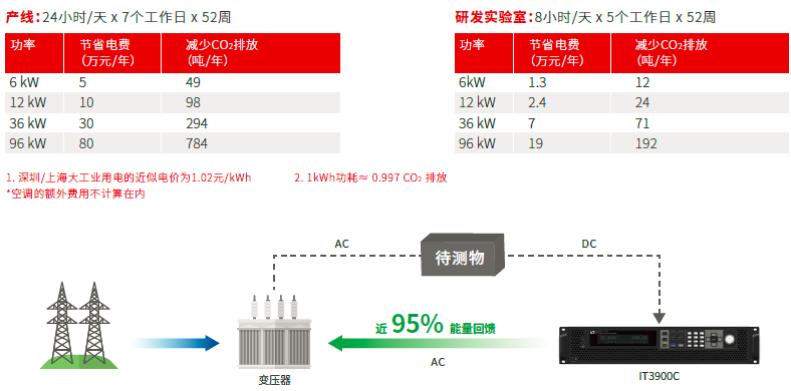 IT-M3900C具有能量回收功能,可以將電能無污染的回饋電網(wǎng),回饋近95%。所有的回饋過程都是自動(dòng)且安全的,IT-M3900C配備了自動(dòng)電網(wǎng)檢測系統(tǒng),實(shí)時(shí)檢測相電壓、頻率用于電網(wǎng)同步。不但可以節(jié)省電力、暖通空調(diào)和制冷設(shè)施的成本,減少噪音,而且有助于減少碳排放,保護(hù)環(huán)境。