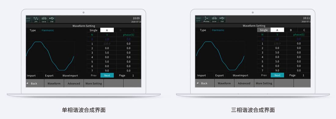 高性能可編程交流電源能夠生成諧波抗擾度測試所需的電壓波形,通過前面板顯示屏或電腦監(jiān)控軟件,用戶可編輯高達(dá)50次諧波,自定義各次諧波幅值,生產(chǎn)輸出特定諧波。