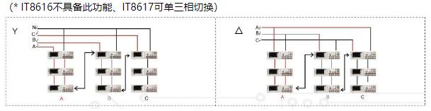 IT8600提供多臺(tái)并聯(lián)、三相與并聯(lián)三相的功能,可以實(shí)現(xiàn)對(duì)于三相交流電源或者更大功率電源的測(cè)試應(yīng)用。在三相并聯(lián)應(yīng)用中,用戶可以根據(jù)實(shí)際需求實(shí)現(xiàn)Y型和Δ型的連接方式,進(jìn)行自由靈活的搭配。IT8600還可以實(shí)現(xiàn)交流380V的輸入,全球通用,滿足多元的測(cè)試需求。