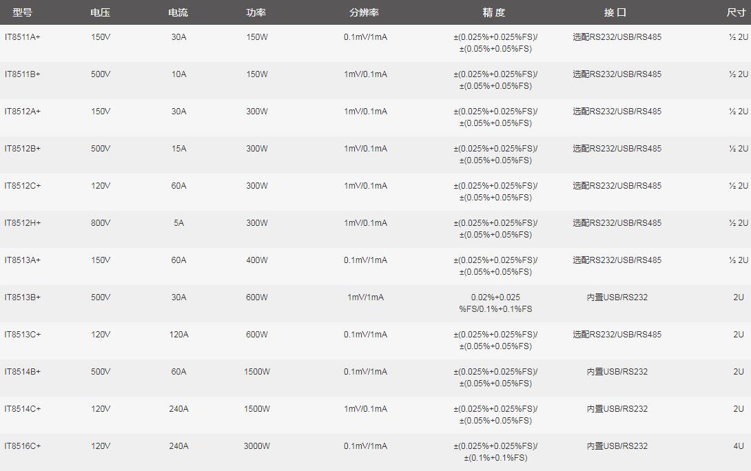 IT8500+系列是單路輸入可編程直流電子負(fù)載,擁有高密度體積,高分辨率和高精度,同時(shí)具有動(dòng)態(tài)測(cè)試和自動(dòng)測(cè)試等多種測(cè)試功能,可應(yīng)用于LED driver測(cè)試,開(kāi)關(guān)電源測(cè)試,電池性能檢測(cè)等多個(gè)行業(yè)領(lǐng)域,也可以提供標(biāo)準(zhǔn)SCPI通訊協(xié)議,方便組建智能化測(cè)試平臺(tái)應(yīng)用于多個(gè)行業(yè)。