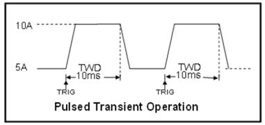 脈沖模式:在脈沖模式下,當(dāng)動(dòng)態(tài)測(cè)試操作使能后,每接收到一個(gè)觸發(fā)信號(hào),負(fù)載就會(huì)切換到B值,在維持B脈寬時(shí)間后,切換回A值。