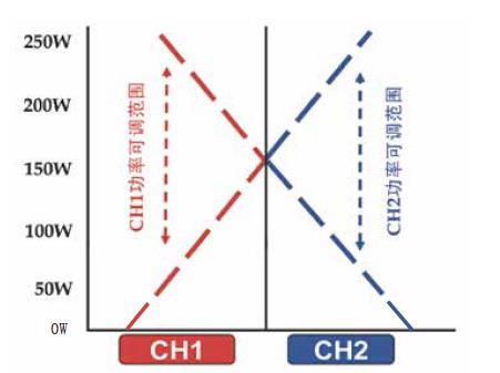 電源測(cè)試通常會(huì)存在一部分電源功率需求較大,而另一組只需很小的功率,IT8722/IT8722B允許用戶(hù)在300W的總功率中,自由分配兩通道的功率,只要任意通道功率不低于50W且不大于250W。一個(gè)模組可滿足不同需求。
