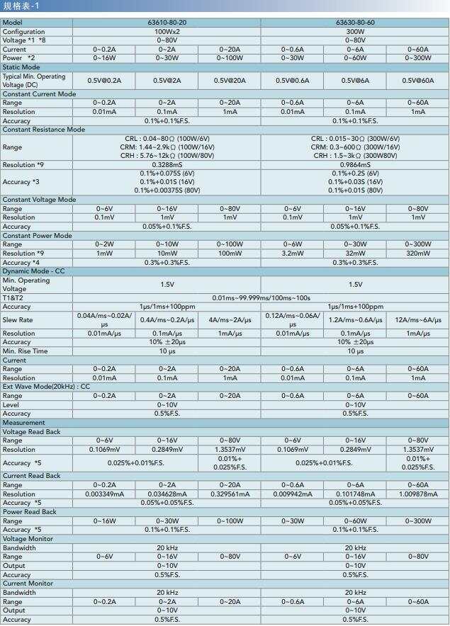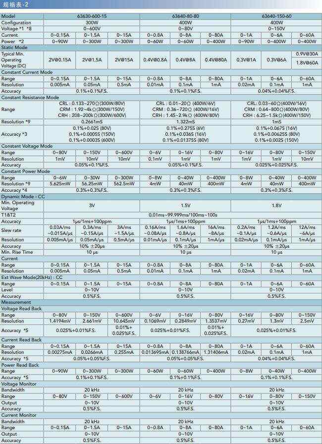Chroma63600系列選型參數(shù)表