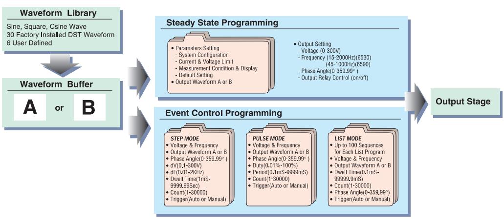 內(nèi)置30種諧波波形資料庫,提供使用者編輯及執(zhí)行輸出。
