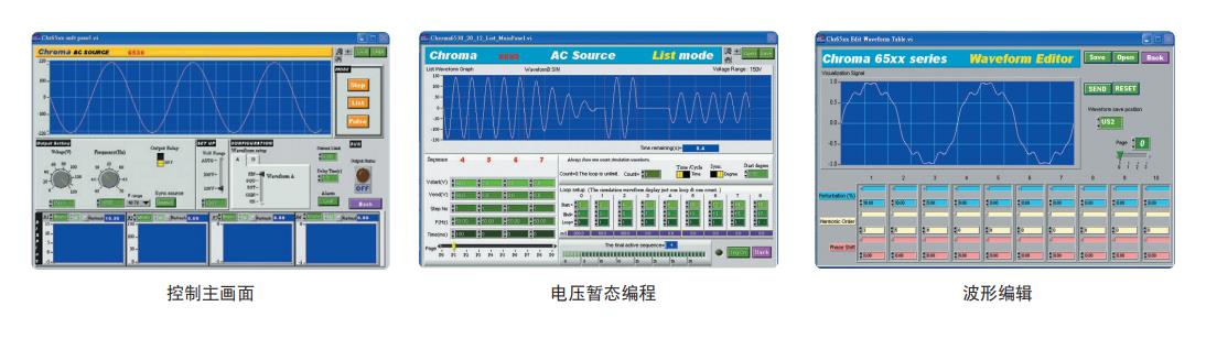 6500系列除了能編輯電壓、頻率輸出外,它還能有效地模擬各種電源中斷情形。通過STEP模式和PULSE模式,為用戶提供簡單易行的方式,來實現(xiàn)輸出參數(shù)逐步或連續(xù)的變化,輸出電壓的幅度、頻率、相位、波形等也可以通過對儀器內(nèi)的內(nèi)部觸發(fā)或外部觸發(fā)的控制來輸出。因此很容易模擬各種電源瞬間斷電、突波、雜訊、緩升等特性。這特性在實際測試中尤為重要,例如當測試產(chǎn)品在90度開機時訓試產(chǎn)品的最大涌浪電流可當測試產(chǎn)品在交流輸入突然有突波產(chǎn)生時觀客產(chǎn)品的特性。跳變瞬舊草式使得產(chǎn)生波形的能力事進一步。通過觸發(fā)器控制可與程序的靜態(tài)時間一到?jīng)]有電腦干擾時,可準確運行多達40種輸出排列程序,電網(wǎng)電壓的跳變,失真的模擬完全符合IEC61000-4-11的測試規(guī)范。