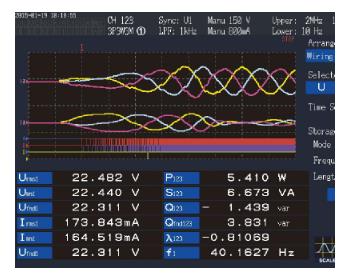 除了電壓、電流以外,還能同時(shí)顯示扭矩傳感器和編碼器信號(hào)。不僅具備觸發(fā)、預(yù)觸發(fā)功能,還有PWM波形觸發(fā)、編碼器脈沖觸發(fā)等便于進(jìn)行馬達(dá)分析的觸發(fā)功能。