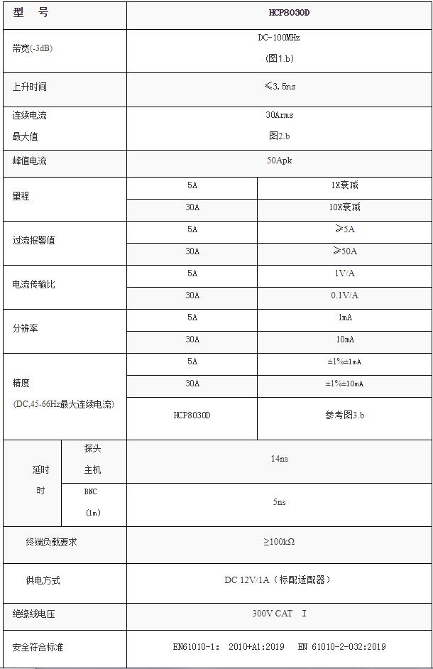 HCP8030D體積輕巧,可在當前擁擠的電路板中使用自如;小型鉗夾可以在緊張的空間中探測電流,同時仍能夾住直徑達5mm的導線;可以測量30A的連續(xù)電流和50A的峰值電流,HCP8030提供50MHz的帶寬,HCP8030D提供100MHz帶寬;探頭具有30A (10X)和5A (1X)兩個量程可選擇,5A (1X)量程特別適用于小電流測量,分辨率高達1mA。