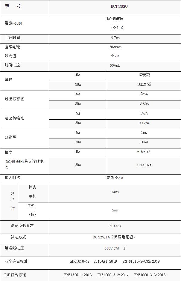 HCP8030體積輕巧,可在當前擁擠的電路板中使用自如;小型鉗夾可以在緊張的空間中探測電流, 同時仍能夾住直徑達 5mm 的導線;可以測量 30A 的連續(xù)電流和 50A 的峰值電流,HCP8030 提供 50MHz 的帶 寬,HCP8030D 提供 100MHz 帶寬;探頭具有 30A (10X)和 5A (1X)兩個量程可選擇,5A (1X)量程特別適用于 小電流測量,分辨率高達 1mA。