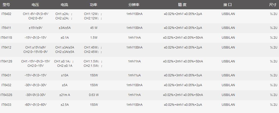 IT6400系列選型參數(shù)表