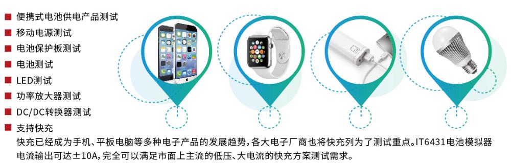 IT6400系列擁有雙極性電壓/電流輸出,可以用作雙極電源或雙極電子負(fù)載,其電池特性模擬功能尤其適用于便攜式電池供電產(chǎn)品的測(cè)試。高達(dá)1nA的解析度,小于20us的快速動(dòng)態(tài)響應(yīng)時(shí)間,和速度切換模式可讓電壓或電流的上升波形高速且無(wú)過(guò)沖,上升時(shí)間最快可達(dá)150us。同時(shí),用戶(hù)還可以通過(guò)波形顯示功能實(shí)現(xiàn)示波器的體驗(yàn),讓使用更加簡(jiǎn)易和有效。廣泛應(yīng)用于便攜式電池供電產(chǎn)品測(cè)試、移動(dòng)電源測(cè)試、LED測(cè)試等領(lǐng)域。