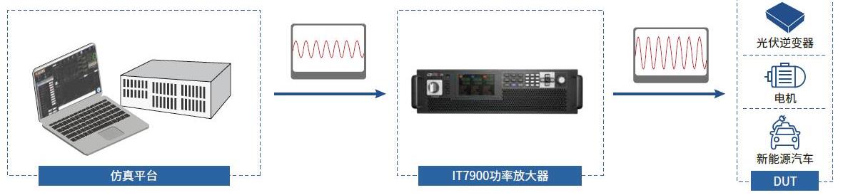 IT7900系列回饋式電網(wǎng)模擬器還可作功率放大器使用,以完成微電網(wǎng),儲能及新能源汽車等領(lǐng)域的功率硬件在環(huán)(PHIL)仿真測試。數(shù)字或建模的模擬量信號經(jīng)由外部模擬量接口(選配)輸入之后,可無失真放大,轉(zhuǎn)換為真實(shí)的電力波形,外部模擬量響應(yīng)時(shí)間小于200us。