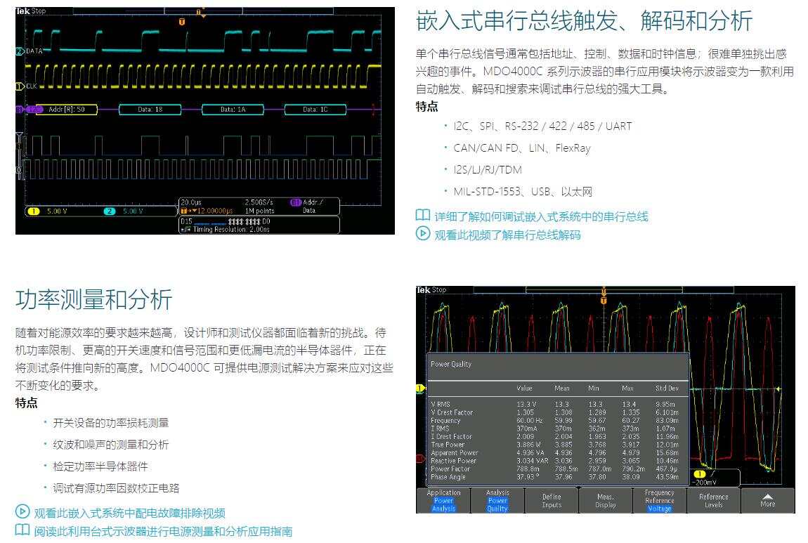 <span font-size:16px;background-color:#ffffff;"="" style="color: rgb(27, 41, 53);">MDO4000C系列是功能強大的混合域示波器,可以量身定制的、可以全面升級的六合一集成示波器,同步查看模擬信號、數字信號和 RF 信號推出世界上性能最高的六合一集成示波器,包括頻譜分析儀、任意波形/函數發(fā)生器、邏輯分析儀、協(xié)議分析儀和 DVM /頻率計數器。MDO4000C 系列為迅速高效地解決最棘手的嵌入式設計挑戰(zhàn)提供了所需的性能。在配備集成頻譜分析儀時,它是唯一提供同時同步采集模擬信號、數字信號和頻譜信號的儀器,特別適合采用無線通信技術(IoT)及進行 EMI 調試。 MDO4000C 全面可以定制,全面可以升級,因此您可以現在、也可以以后增加所需的儀器。