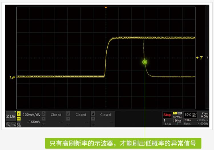 100萬次/秒波形刷新率,快速發(fā)現(xiàn)異常信號;示波器波形刷新率越高,死區(qū)時間就越短,可以更快發(fā)現(xiàn)偶發(fā)性的異常信號。ZDS5054Pro示波器突破100萬次/秒波形刷新率,讓工程師快速發(fā)現(xiàn)異常信號。