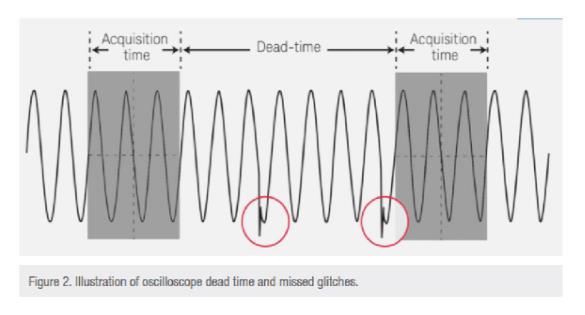 說(shuō)世界上最快的波形更新速度時(shí),并不是在夸大。業(yè)界領(lǐng)先的每秒1,000,000波形(wfms/s)的3000T x系列的更新速度遠(yuǎn)遠(yuǎn)超過(guò)了Tektronix 3系列的更新速度。在FastAcq模式下,3系列可以達(dá)到280,000 wfms/s,但重要的是,FastAcq模式限制了示波器的其他關(guān)鍵功能。在正常采集模式下,該3系列可以達(dá)到約50,000 wfms/s。這比InfiniiVision 3000T x系列慢20倍。波形更新速率規(guī)格說(shuō)明了示波器每秒采集的次數(shù)。波形更新速率越大,每秒的捕獲次數(shù)越多,dead time越短。那么你就越有可能捕捉到難以捉摸的信息。Keysight 3000T x系列示波器的速度比Tektronix示波器快20倍,這就意味著捕獲錯(cuò)誤的可能性是Tektronix示波器的20倍。