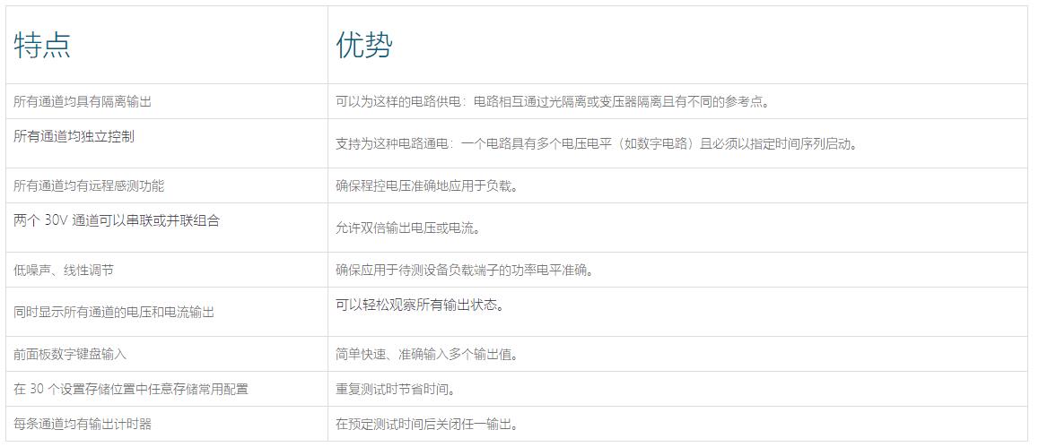 當(dāng)應(yīng)用需要輸出超過30V或3A的電源時,將兩個30V通道進行組合,就可以使 輸出翻倍。將兩個輸出進行串聯(lián),可以提供60V電源;將兩個輸出進行并聯(lián),可以 提供6A電流。為了方便讀數(shù),避免混淆,2231A-30-3型電源顯示屏將顯示所有輸出, 包括電壓或電流。此外,電源還可以控制輸出,以提供所需的電壓或電流。無需對 每個通道進行**設(shè)置;電源將為您管理通道,因此,實現(xiàn)通道組合并不復(fù)雜。