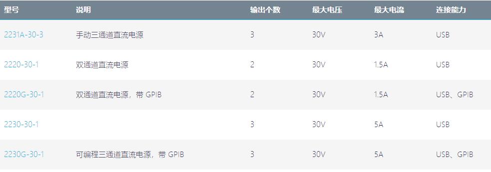 2220 和 2230 系列多通道可編程直流電源,非常適合測試需要多個電源的各種設(shè)備、電路板、模塊和產(chǎn)品,經(jīng)濟實惠。2200 系列電源提供兩條通道,每條通道可以輸出高達 30V 的電壓和高達 1.5A 的電流。2230 系列電源包括兩條 30V/1.5A 通道,還包括一條 6V 通道,可輸出高達 5A 的電流為數(shù)字電路供電。2231A-30-3 型的兩條通道分別在電流為 3A 時可以提供高達 30V 的電壓;第三條通道在電流為 3A 時可以提供高達 5V 的電壓。