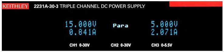 對兩個30V通道進行串聯(lián)或并聯(lián),可以使輸出電源翻倍,達到60V,或者使輸出電流翻倍,達到6A。 2231A-30-3型電源具有串聯(lián)和并聯(lián)模式,可以管理通道,并顯示所有輸出。這個顯示屏給出電源的 并聯(lián)模式,包括輸出電源和并聯(lián)通道的整個電流。
